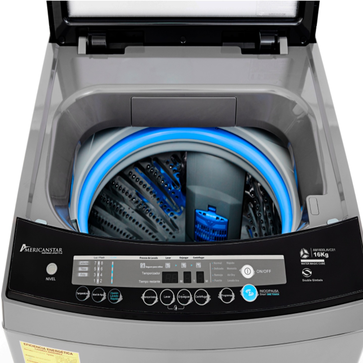 Con capacidad de 35 libras, es capaz de manejar cargas realmente grandes. Posee 8 programas de lavado, auto-balance de ropa, evitando daños a la misma, los cuales se programan en la pantalla LED que posee en la parte frontal de la lavadora.