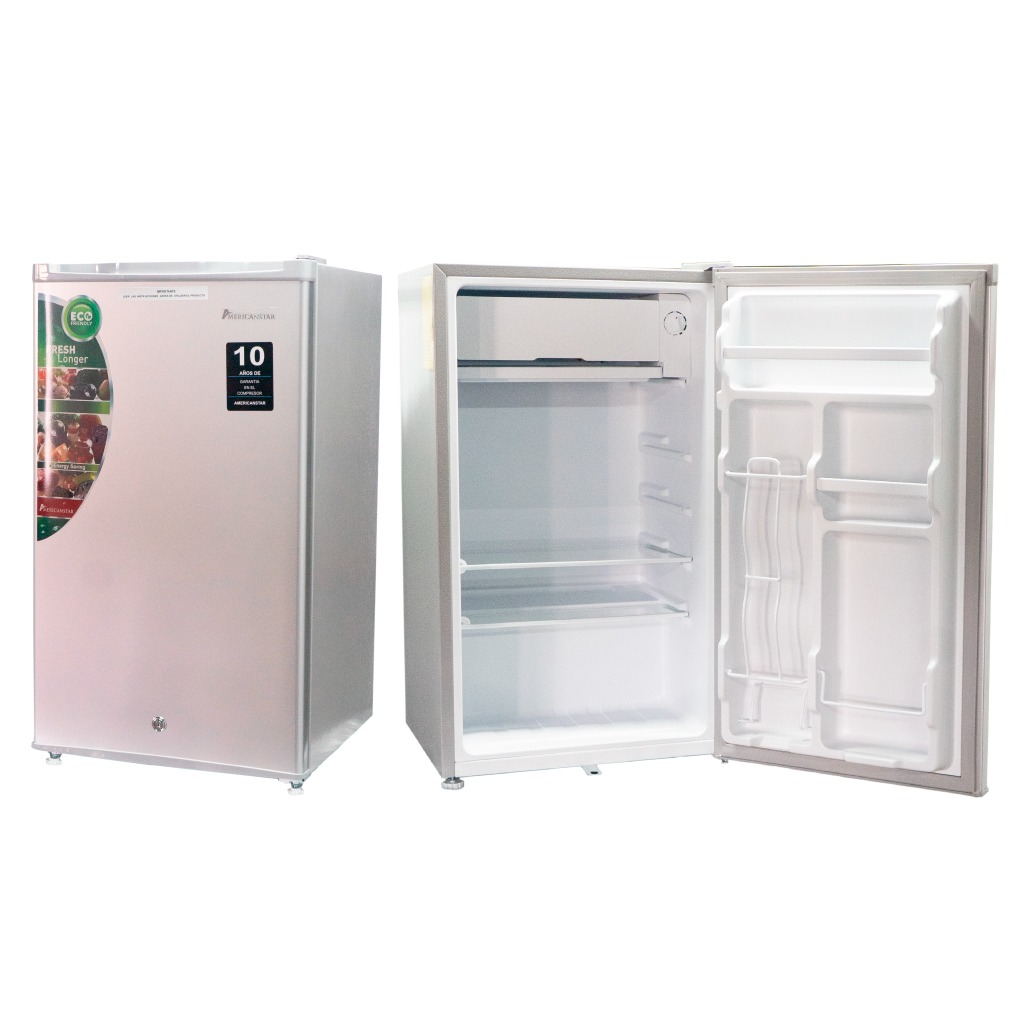 La nueva refrigeradora ejecutiva AmericanStar es un refrigerador de tamaño modesto, adecuado para uso en cocina, que ofrece capacidad de 100 litros para el almacenamiento de sus alimentos, bebidas y mucho más. Viene con bandeja para legumbres y control de temperatura.